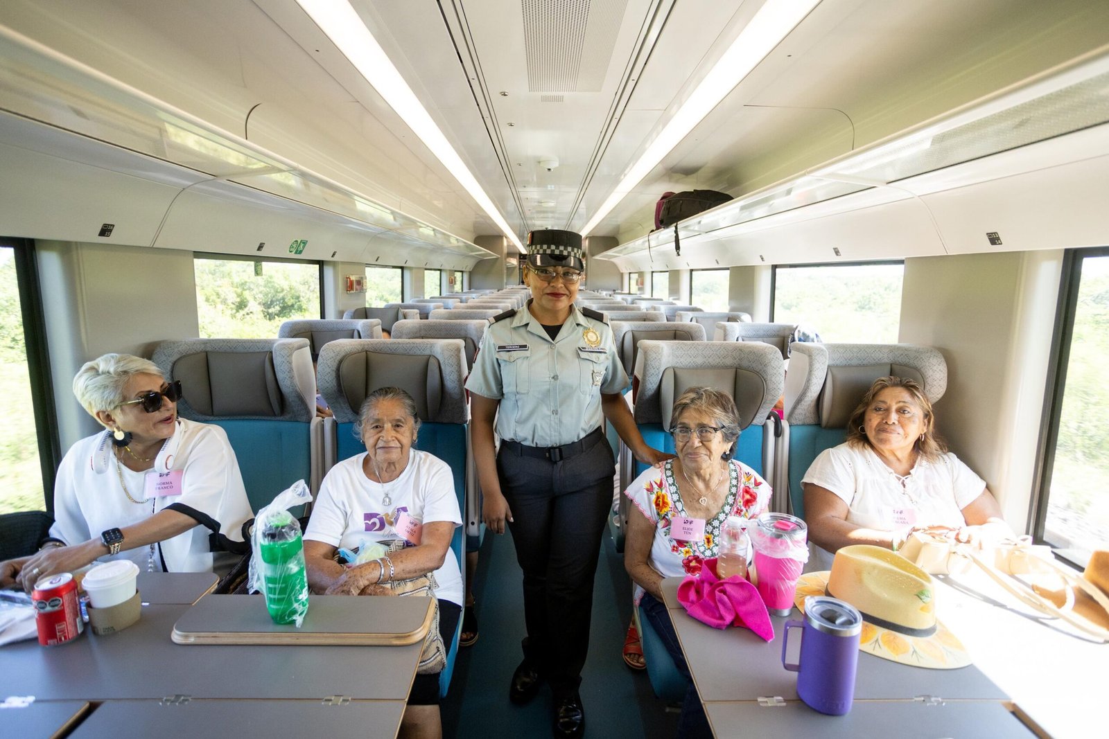 Umán, Yucatán, 2025.- Con entusiasmo y sonrisas, los integrantes del club del adulto mayor “Renacer con Bienestar” de Umán realizaron un viaje muy esperado: recorrer la ruta del Tren Maya hasta Izamal, una actividad organizada por el Ayuntamiento y el DIF municipal como parte de la estrategia de bienestar social durante el Mes del Adulto Mayor.