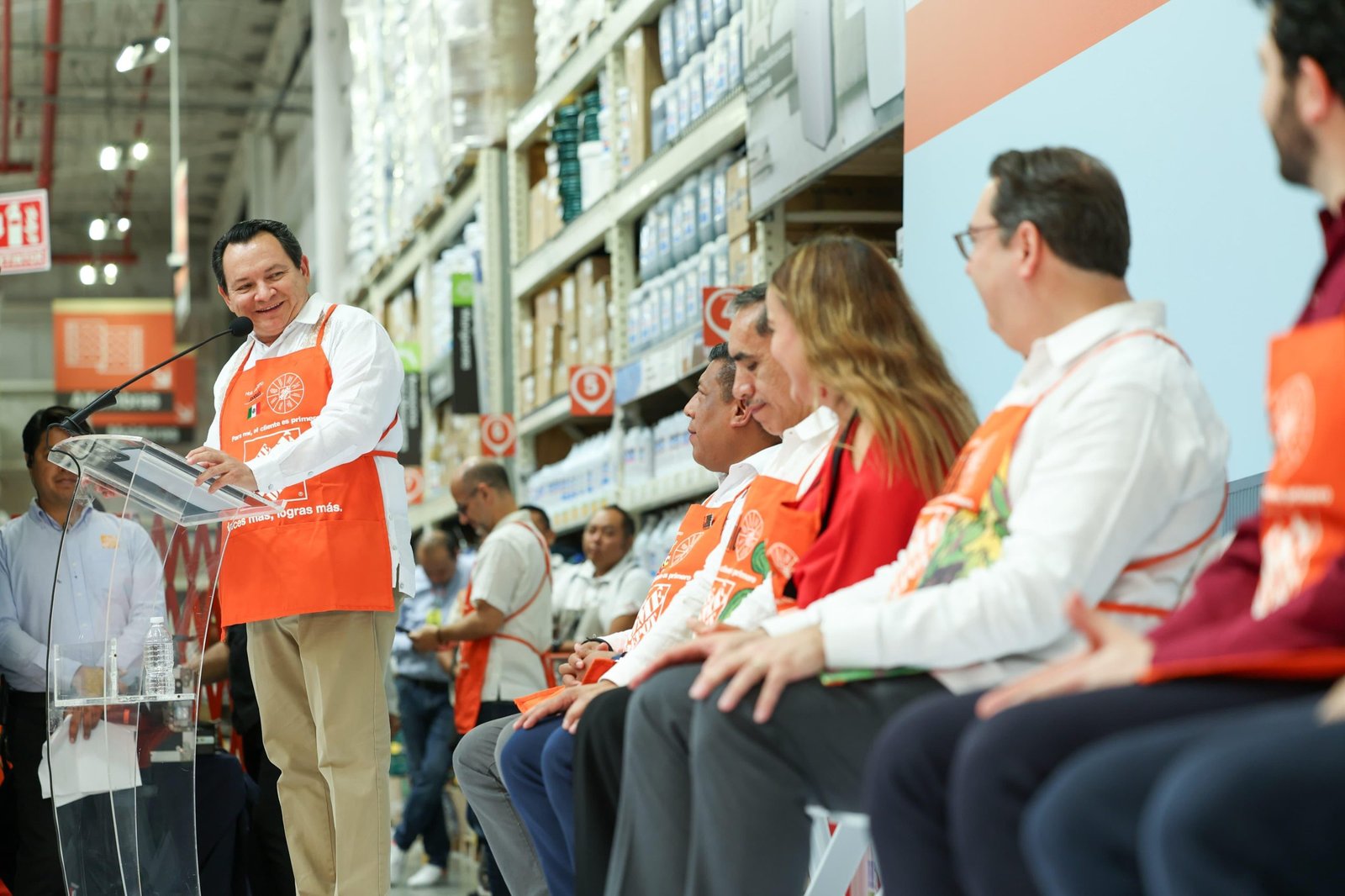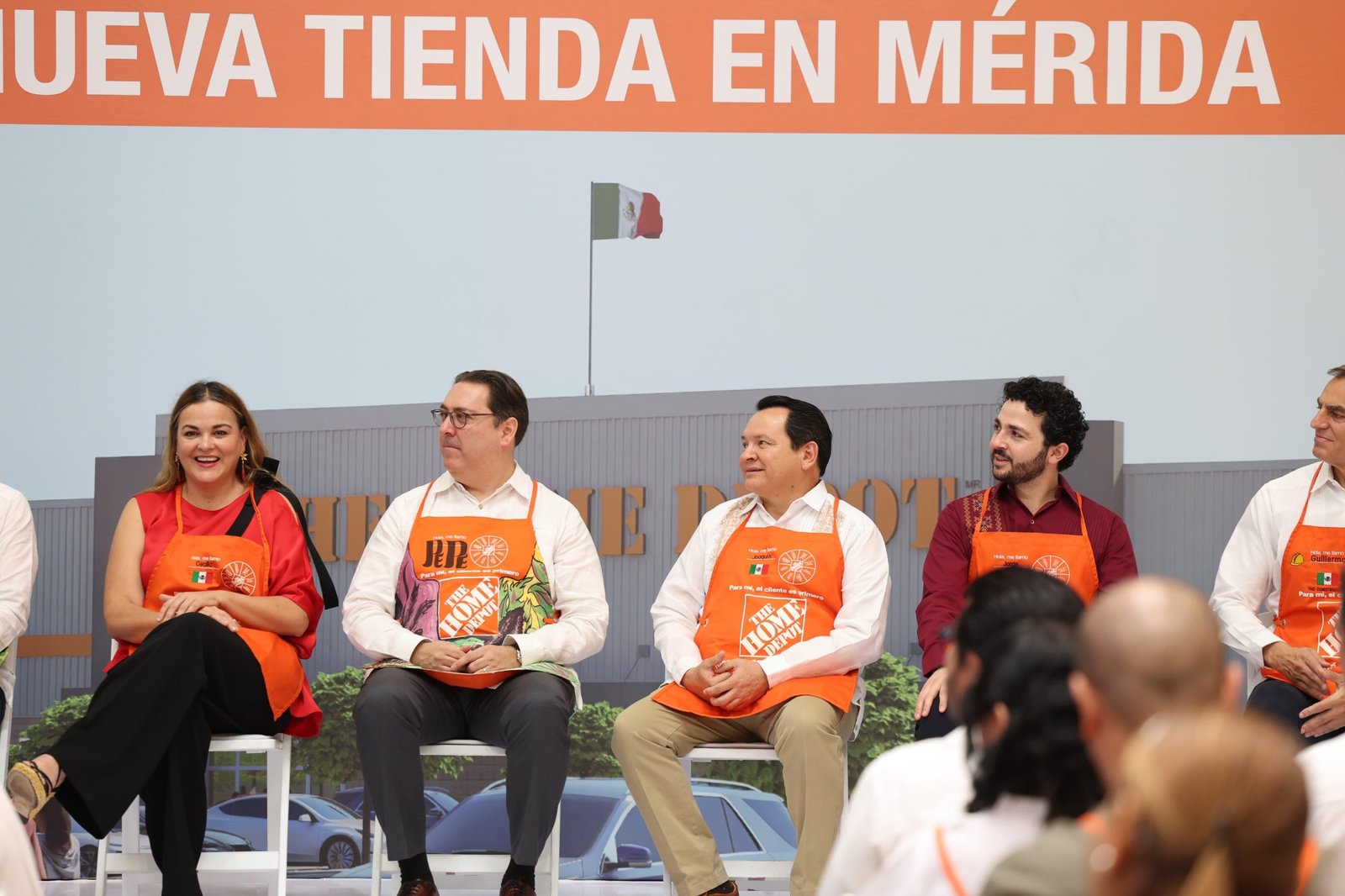 El evento contó con la presencia de importantes figuras como el titular de la Secretaría de Economía y Trabajo (SETY), Ermilo Barrera Novelo; la alcaldesa de Mérida, Cecilia Patrón Laviada; el presidente del Consejo Coordinador Empresarial (CCE), Juan Carlos López Pérez; y directores de The Home Depot en áreas clave de desarrollo y operaciones.