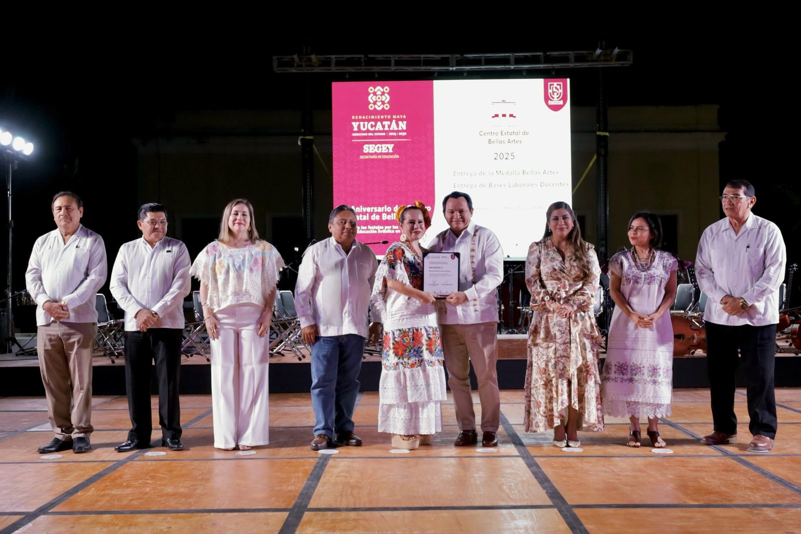 Además, durante la celebración, la maestra Graciella Torres Polanco, con 48 años dedicados a la enseñanza de las artes, fue galardonada con la Medalla Bellas Artes 2025, reconociendo su trayectoria y contribución a la cultura yucateca.