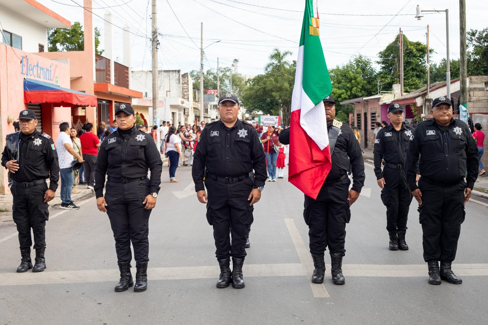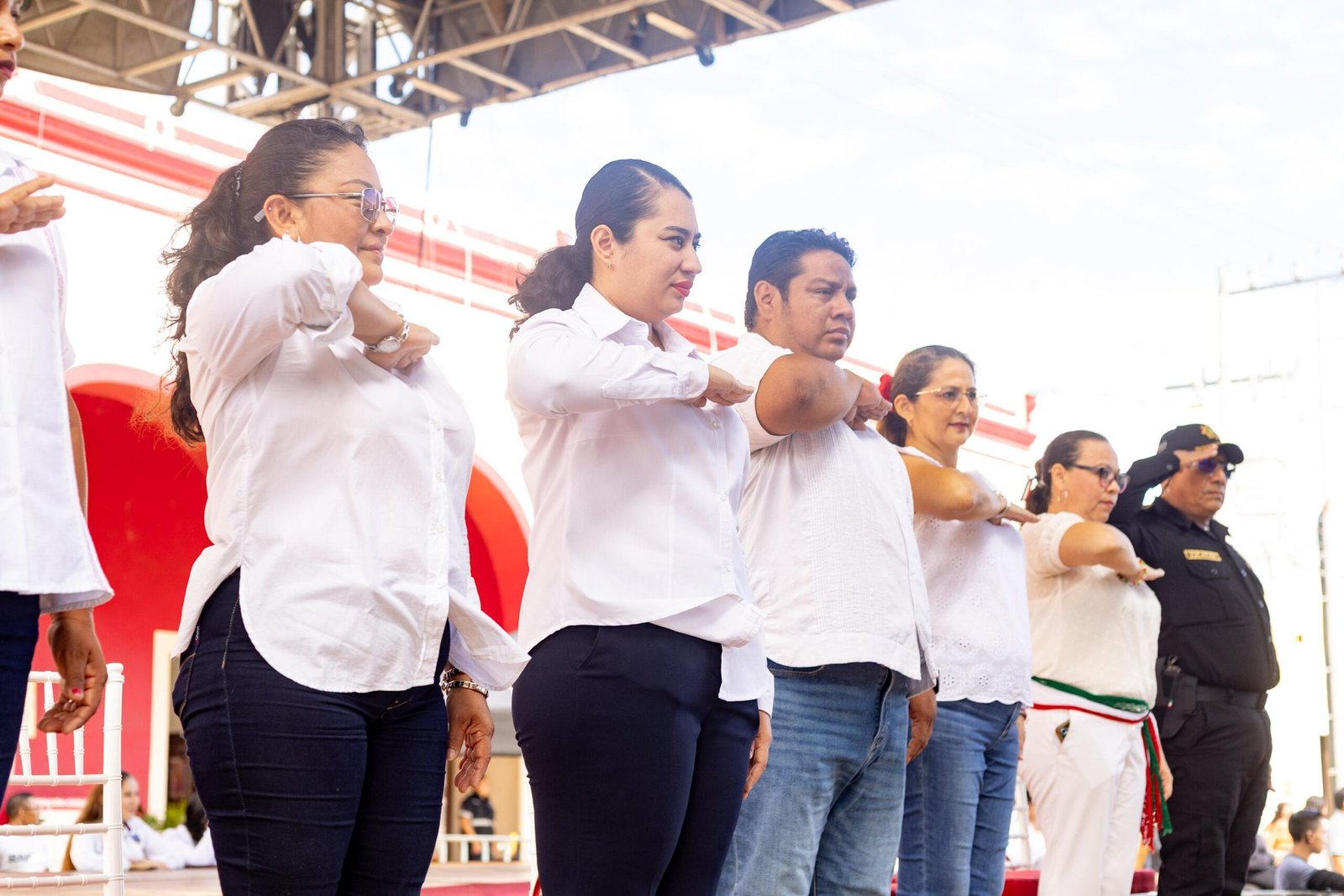 Entre las autoridades presentes estuvieron la secretaria municipal, Rocío del Socorro Chacón Yam; el síndico municipal, Francisco Augusto Ojeda Cisneros; el comandante de Seguridad Pública, Marcos López Ovando; regidoras y regidores del Cabildo, quienes reconocieron el esfuerzo de las instituciones educativas por transmitir la importancia del civismo a las nuevas generaciones.