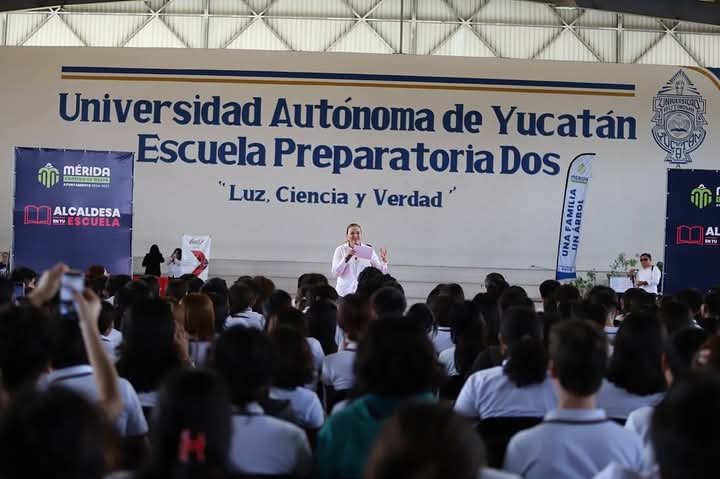 En un encuentro con estudiantes de la Preparatoria Dos de la UADY, la Presidenta Municipal de Mérida, Cecilia Patrón Laviada, resaltó la importancia de la juventud en la construcción de una ciudad más cohesionada y participativa. Durante el evento de “Alcaldesa en tu Escuela”, la Alcaldesa destacó que Mérida no puede ser la mejor ciudad posible sin la participación activa de sus jóvenes en la toma de decisiones.