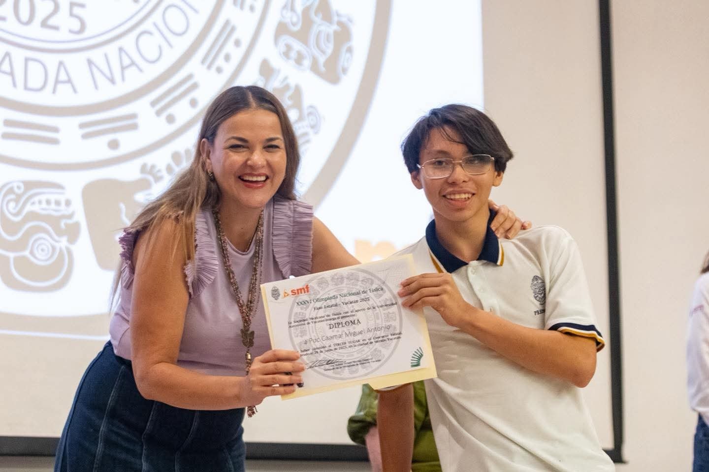Mérida, Yucatán, julio de 2025.– En un acto que destacó la excelencia académica de la juventud yucateca, la alcaldesa de Mérida, Cecilia Patrón Laviada, asistió a la Ceremonia de Premiación de la Fase Estatal de la Olimpiada Nacional de Física, donde felicitó a los jóvenes ganadores por su destacada participación y esfuerzo.