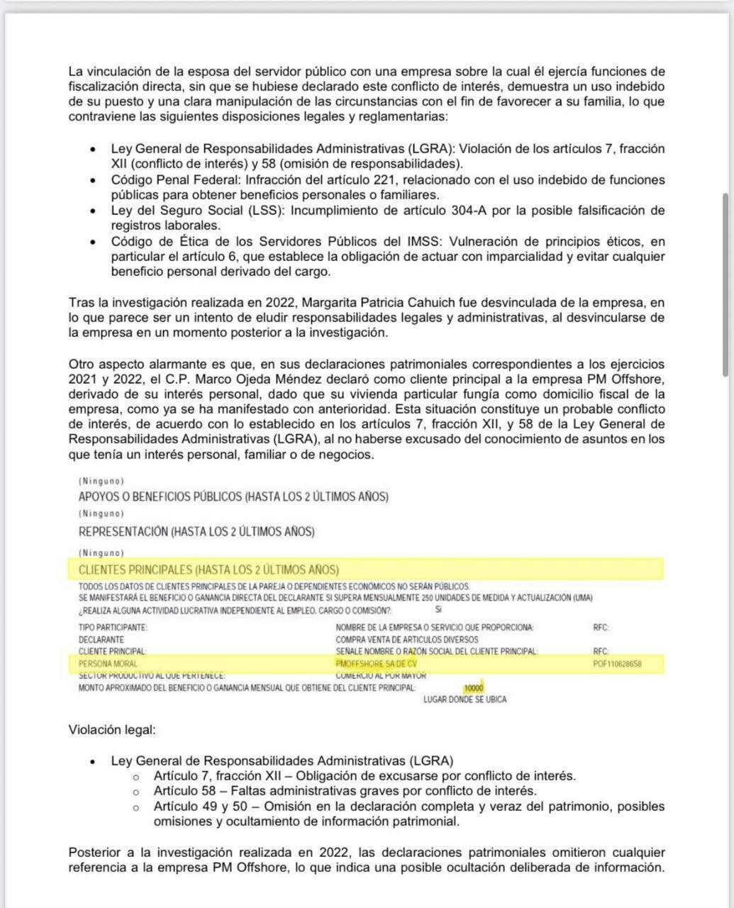 De acuerdo con el expediente presentado, funcionarios del IMSS habrían favorecido a empresas fachada vinculadas con personal administrativo, mediante contratos simulados y adjudicaciones irregulares. Estas prácticas, que vulneran la Ley General de Responsabilidades Administrativas, se habrían normalizado bajo redes internas de complicidad.