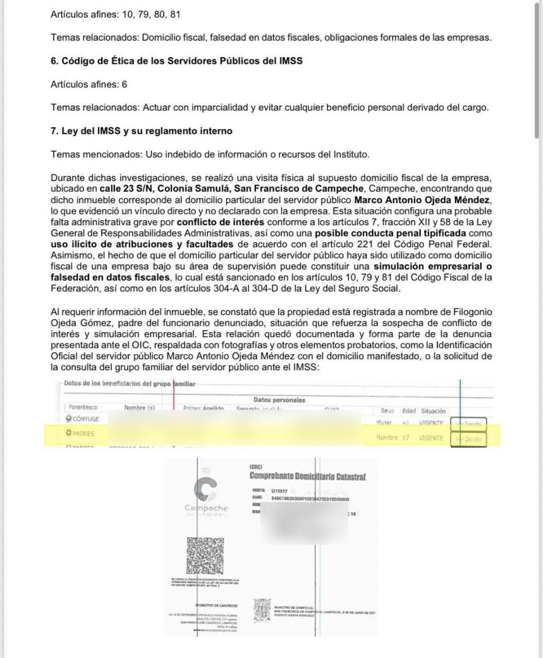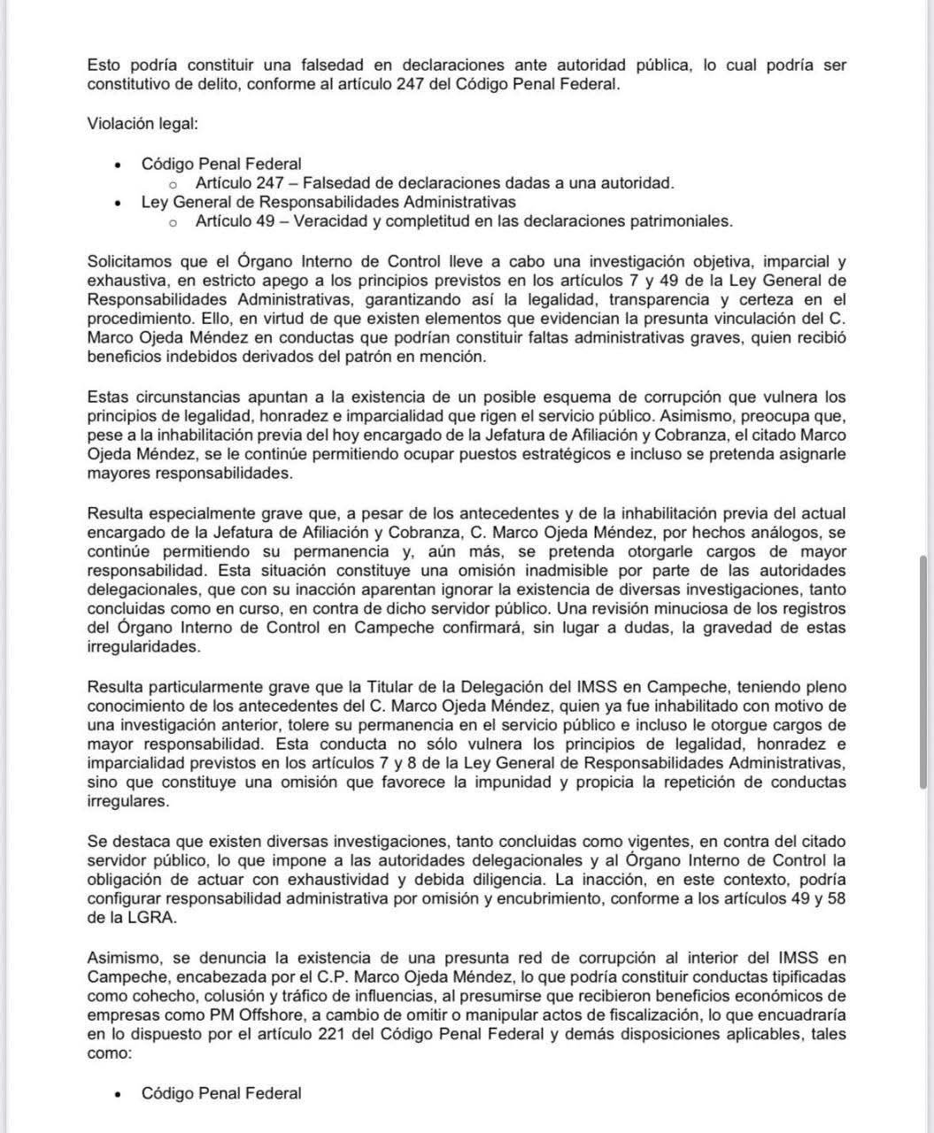 Se exige que el OIC actúe de manera inmediata, independiente y rigurosa, para desmantelar la red de corrupción y garantizar la legalidad. La ciudadanía alerta sobre la posibilidad de que la inacción o el encubrimiento institucional profundicen la crisis de confianza en el IMSS Campeche.