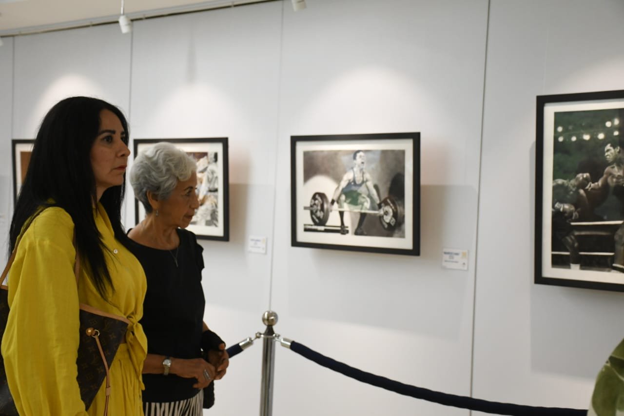 La muestra, compuesta por 16 retratos realizados con la técnica de dibujo Conté, captura la esencia de atletas como el clavadista Rommel Pacheco, la nadadora Karen Achach, la futbolista Lupita Worbis, la karateka Lupita Quintal, el beisbolista Manuel Rodríguez, y figuras internacionales como el basquetbolista Michael Jordan y el piloto de Fórmula 1 Sergio “Checo” Pérez.