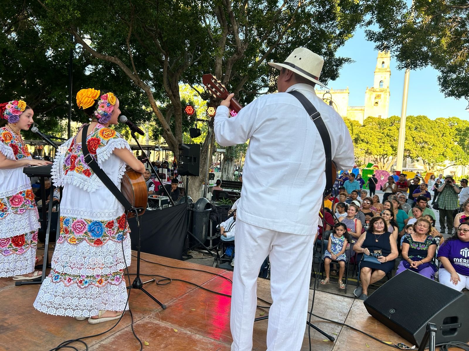 La Plaza Grande fue también escenario de espectáculos musicales, con la participación de las “Hermanitas Pech Bolio”, quienes ofrecieron una presentación de trova yucateca, resaltando la riqueza cultural de la región. Para finalizar, la DJ “Domina” cerró con un set lleno de energía, haciendo vibrar a todos los asistentes con su música.
