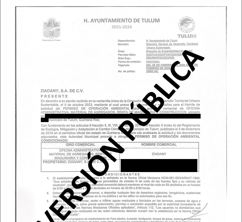 Ziadany S.A. de C.V. está registrada como empresa dedicada al ramo de la construcción. En documentos públicos del Ayuntamiento de Tulum, en Quintana Roo, figura como contratista de obra pública durante la administración 2021-2024. Hasta ahora, no se conocen antecedentes comprobables de que la firma haya operado en el sector de residuos o servicios ambientales.