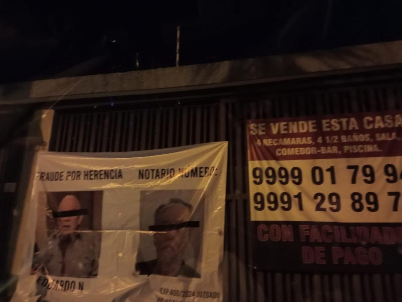 Mérida, Yucatán, 8 de septiembre de 2025.- En diferentes puntos de la ciudad de Mérida aparecieron lonas impresas que exhiben a presuntos responsables de un fraude por herencia, identificado en la carpeta EXP.400/2024 del Juzgado de Oralidad Familiar.
