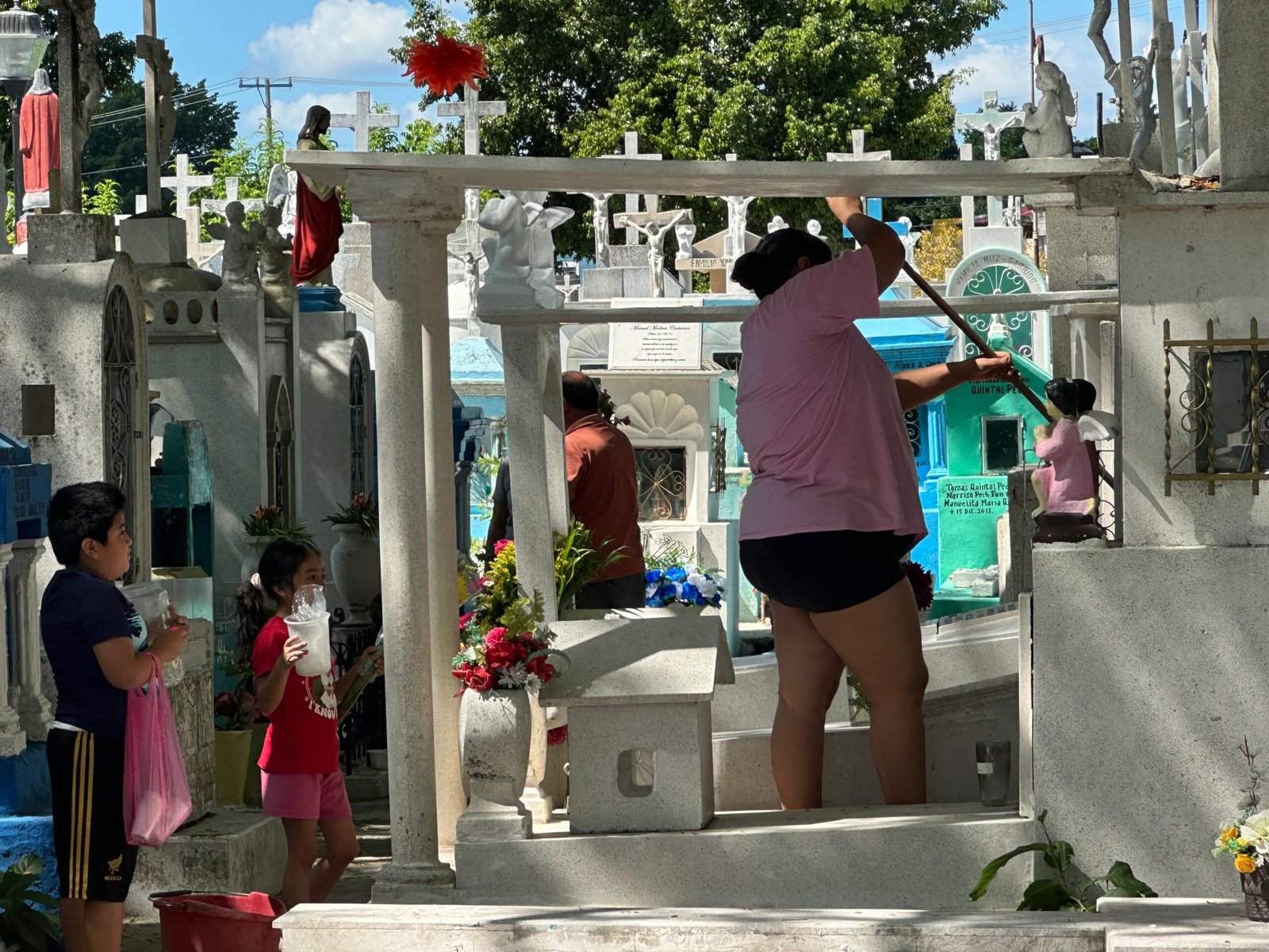 Desde tempranas horas, los visitantes llevaron flores, veladoras y ofrendas, además de dedicar tiempo a lavar y pintar las tumbas, en una muestra de cariño y recuerdo hacia quienes han partido.