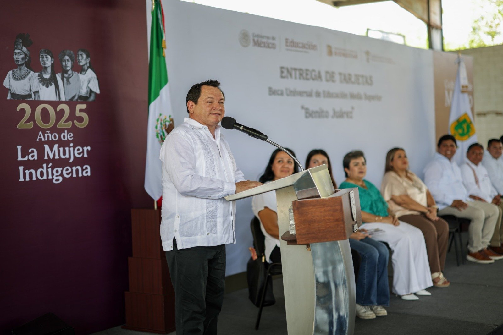 Mérida, Yucatán, mayo de 2025.– Con el objetivo de impulsar la permanencia escolar en el nivel medio superior, el gobernador del estado, Joaquín Díaz Mena, encabezó la entrega de 259 tarjetas de la beca “Benito Juárez” a estudiantes de nuevo ingreso de la Preparatoria Federal por Cooperación “Miguel Ángel” en la capital yucateca.