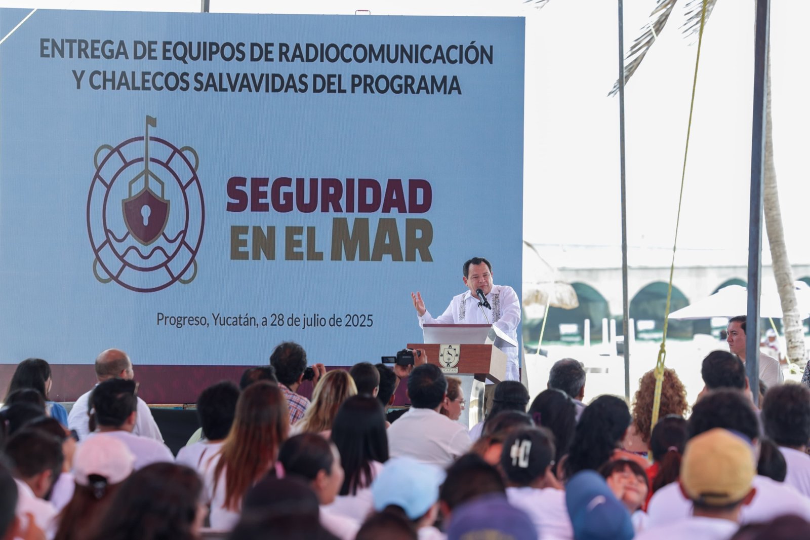 Progreso, Yucatán, 28 de julio de 2025.– Con el objetivo de dignificar la labor de los pescadores y reforzar su seguridad en altamar, el gobernador de Yucatán, Joaquín Díaz Mena, encabezó la entrega de 3,022 chalecos salvavidas y 1,226 radios de comunicación marina como parte del programa “Seguridad en el Mar”.
