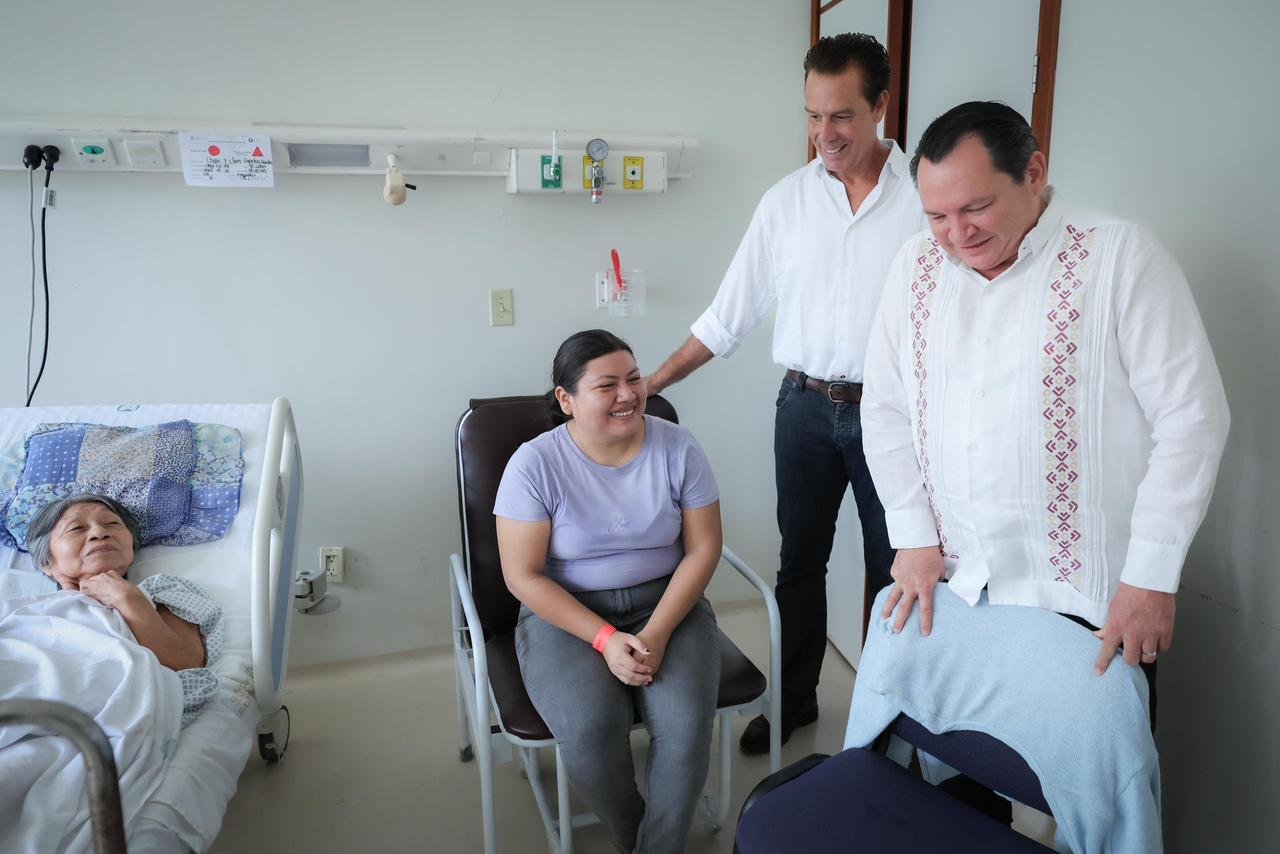 Durante su visita al Hraepy, el Gobernador conversó con Yolanda Cua Chalé, quien acompaña a su madre, Perpetua Chalé y Chim, tras una cirugía de hernia, y pudo constatar el beneficio que representa contar con este tipo de mobiliario para los familiares que deben permanecer en los hospitales durante largos periodos.