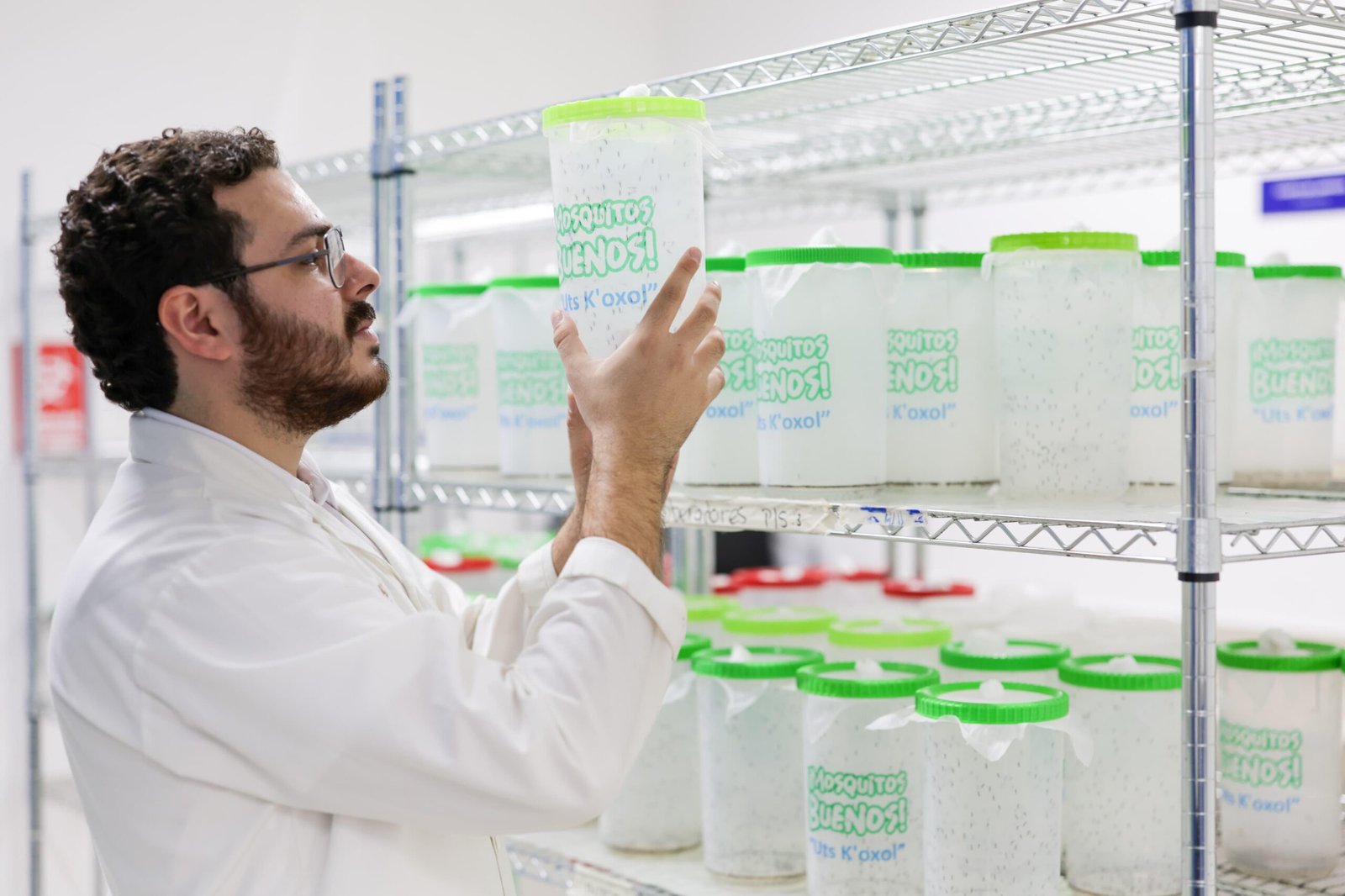 El responsable del laboratorio, Pablo Manrique Saidén, explicó al funcionario federal los procesos de producción, control y liberación de estos mosquitos modificados, y detalló cómo, al reproducirse, desplazan gradualmente a la población de mosquitos transmisores.