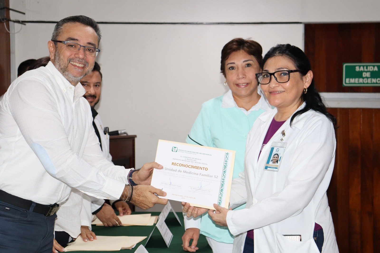 Además, se otorgó un reconocimiento especial a la UMF No. 58 ubicada en la colonia Serapio Rendón en Mérida, por haber alcanzado el mejor desempeño en la implementación del programa, con el menor tiempo de espera para sus derechohabientes. Este reconocimiento se extiende también a su directora, la doctora Laura Beatriz Cocom Colin, y a todo su equipo de trabajo.