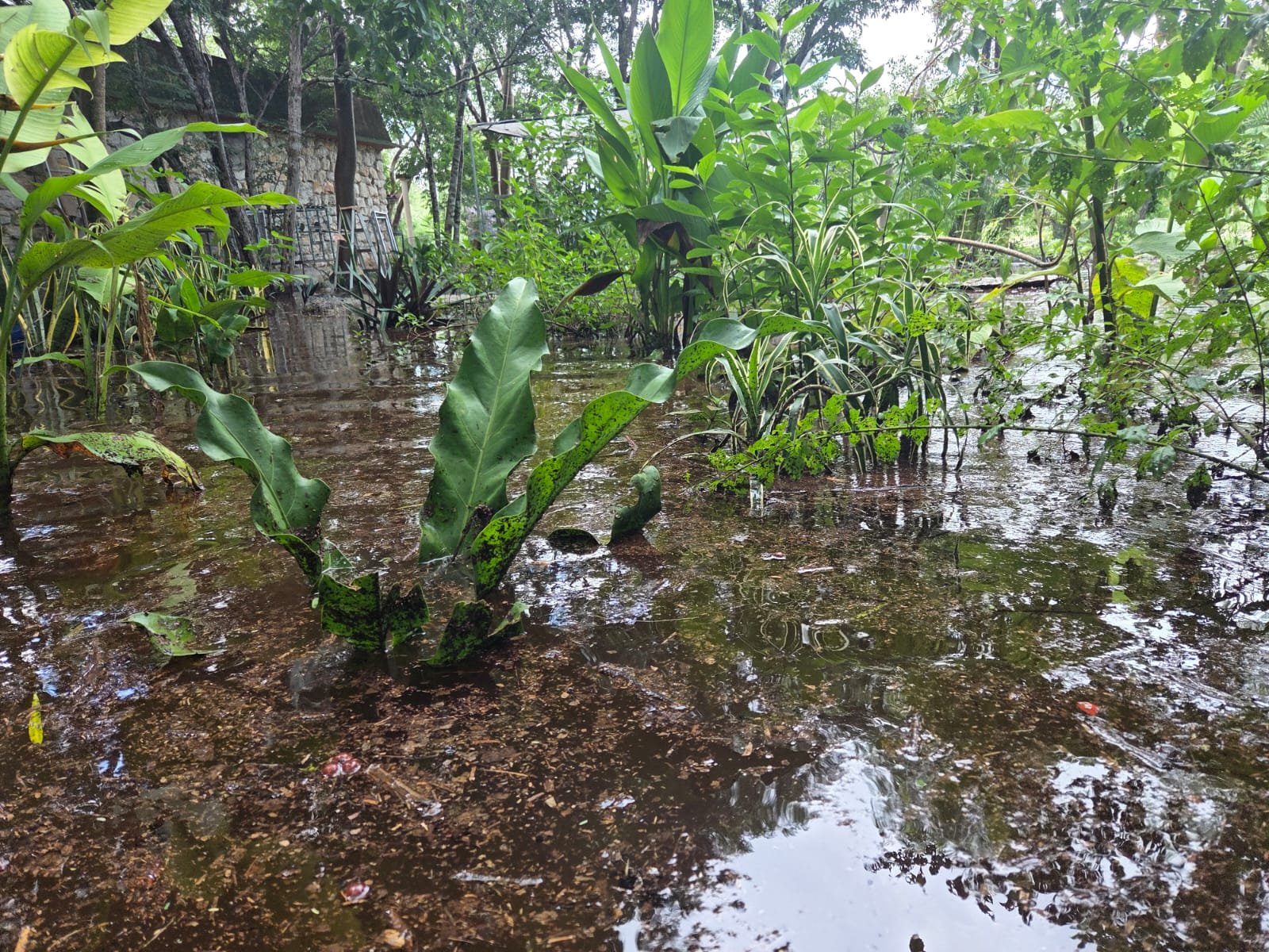 Mérida, Yucatán, 21 de septiembre de 2025.- Las intensas lluvias que se han registrado en el estado en los últimos días dejaron al refugio de loros de Proyecto Santa María bajo el agua, con un nivel de inundación de aproximadamente 50 centímetros en todo el terreno, informó Pierre Medina Arjona, director de la asociación civil.