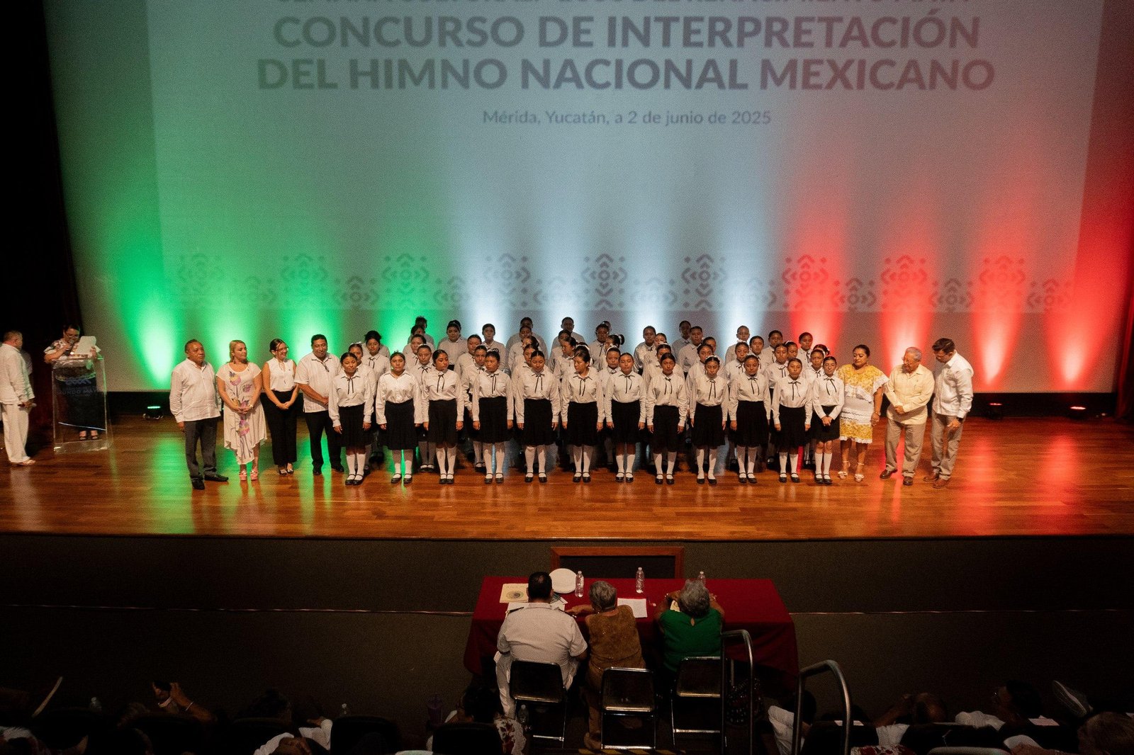 Mérida, Yucatán, junio de 2025. — Estudiantes de la Escuela Secundaria “Jaime Torres Bodet” del municipio de Muna se alzaron con el primer lugar en la fase estatal del Concurso de Interpretación del Himno Nacional Mexicano 2025, tras una destacada presentación que conmovió por su disciplina, entonación y sentimiento patriótico.