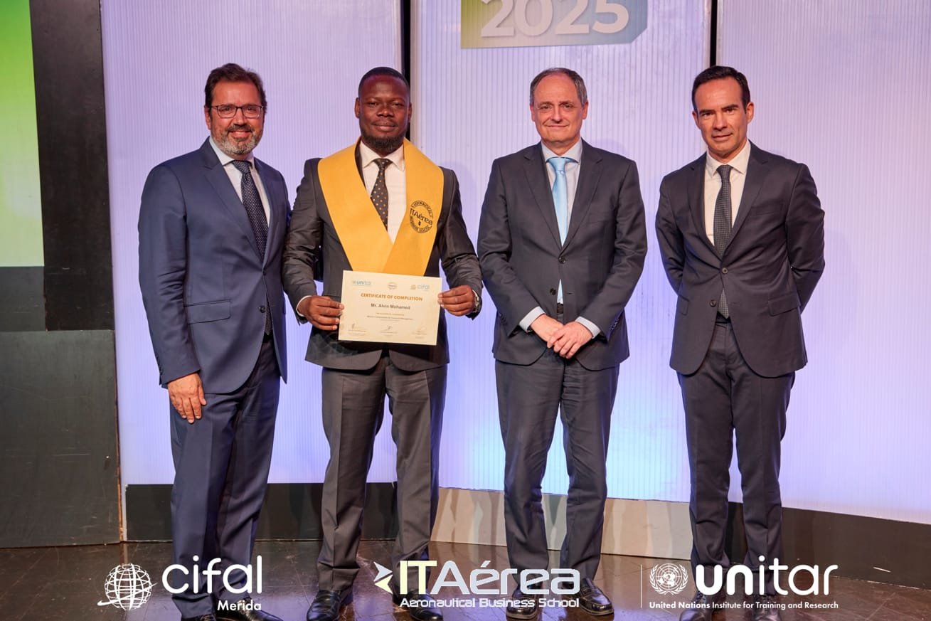 Los egresados de la promoción 2024-2025, provenientes de 32 países de los cinco continentes, fueron reconocidos por su compromiso con el desarrollo sostenible y por su papel como futuros líderes del sector aeroportuario.
