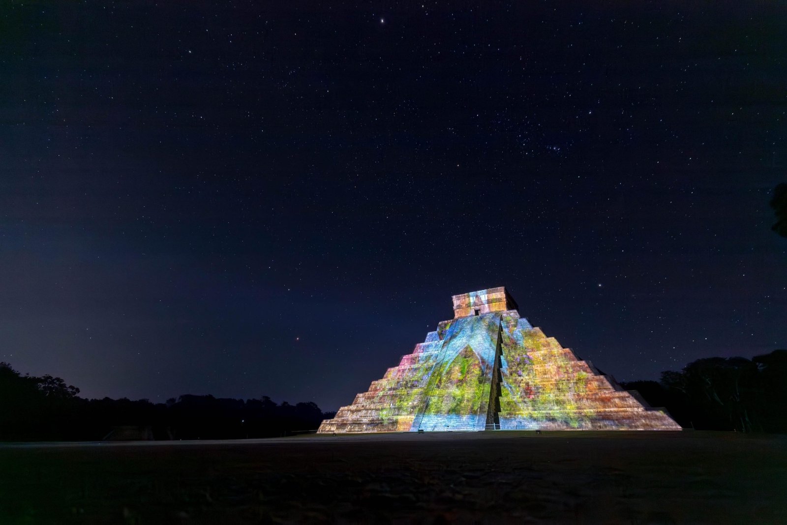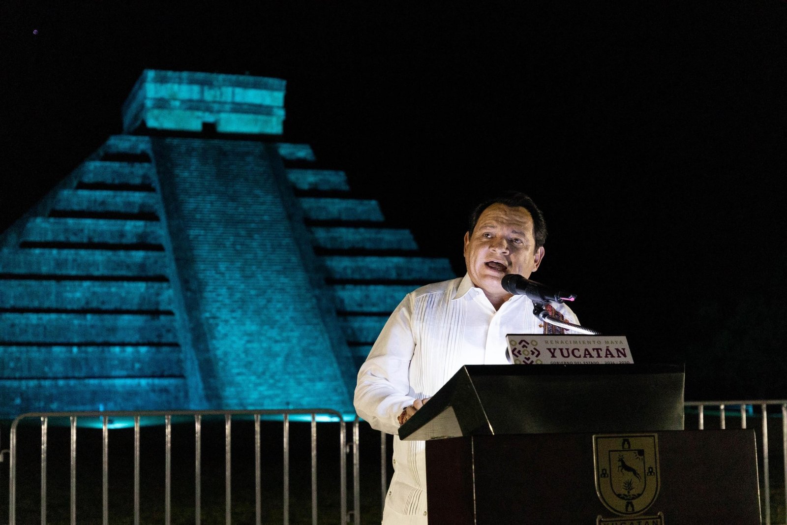 Presentado por primera vez en julio de 2024 en el Zócalo de la Ciudad de México, sobre una réplica del Castillo de Kukulcán, el videomapping “El pueblo maya y Felipe Carrillo Puerto: Memoria Luminosa” busca no solo rendir homenaje al prócer, sino también a las comunidades mayas que, durante su gobierno, trabajaron en el rescate y conservación del sitio arqueológico y en la creación de la infraestructura que permitió su acceso.
