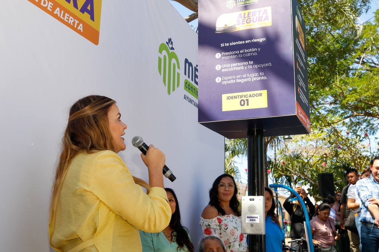 La presidenta municipal de Mérida, Cecilia Patrón Laviada, inauguró oficialmente el sistema “Alerta Segura” en el parque de San Cristóbal, como parte de las acciones para fortalecer la seguridad en el Centro Histórico de la ciudad.