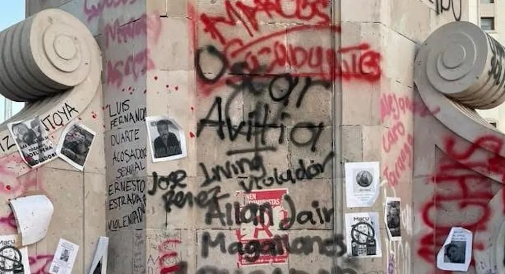 Las paredes hablaron. Y hablaron fuerte. Entre las decenas de denuncias pintadas con spray, resaltaron nombres de figuras públicas que, al parecer, acumulan señalamientos de abuso, acoso o violencia laboral.