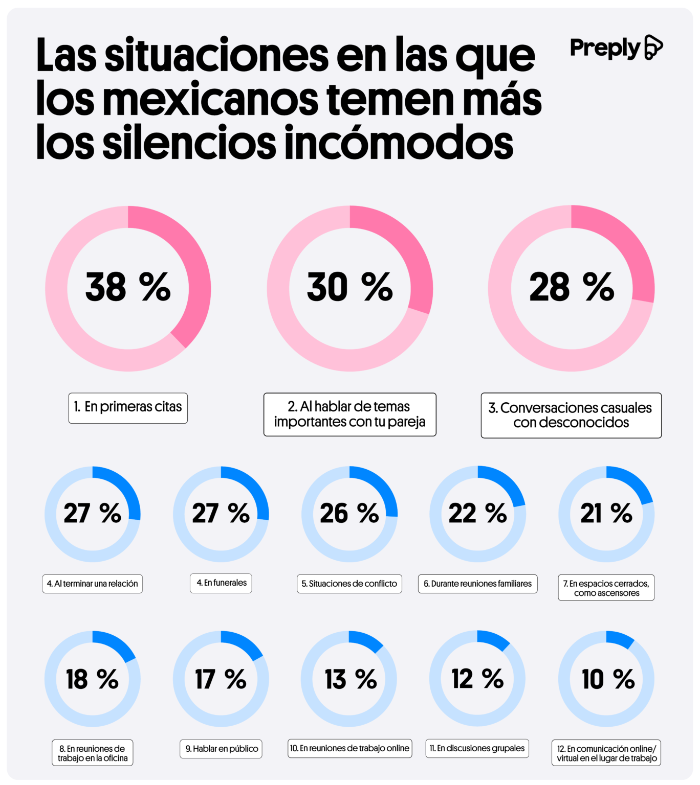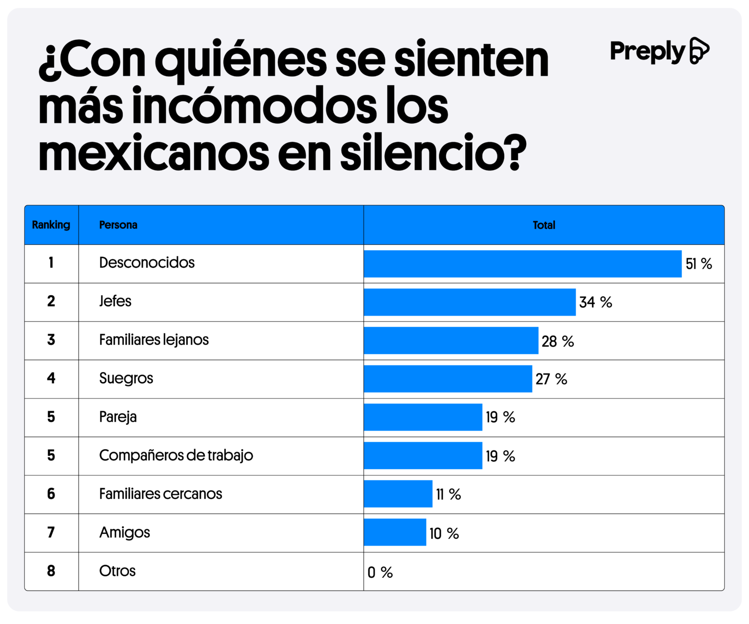 Conversaciones con desconocidos: el mayor reto. Para el 51% de los mexicanos, un silencio con alguien que apenas conocen es especialmente difícil de manejar. En el caso de las mujeres, la incomodidad es mayor (54%) que en los hombres (48%).