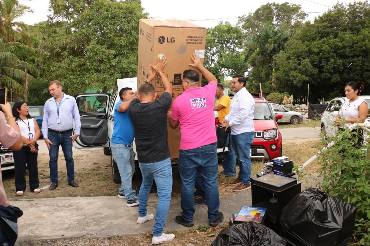 Con el acompañamiento del DIF Municipal, empresas y asociaciones, se entregó a la familia una silla de ruedas, un tinaco, alimentos no perecederos, apoyo económico, ropa, blancos, artículos esenciales y un refrigerador donado por la empresa Bomssa. Además, Berel colaboró con pintura para rehabilitar la vivienda, mientras que Fundación ADO, CMIC Yucatán y la asociación civil MAQUETA sumaron sus aportaciones al esfuerzo colectivo.