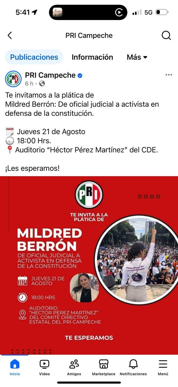 Sin embargo, ahora su imagen genera debate. De acuerdo con información que proviene de un correo firmado como “Agencia de Información Caos en la Red”, el cual podría tener un interés político, Mildred Berrón ha participado recientemente en conferencias organizadas por el PRI en Campeche, como el evento “Voces de la Juventud”, donde fue presentada como ejemplo de liderazgo juvenil.