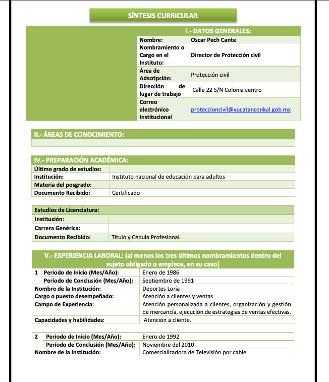 Según el currículum vitae (CV) del funcionario, su formación académica se limita al nivel básico de educación. Lejos de contar con una ingeniería, licenciatura en gestión de riesgos o formación técnica en atención de desastres, la experiencia laboral de Pech Canté se centra exclusivamente en el área de ventas.