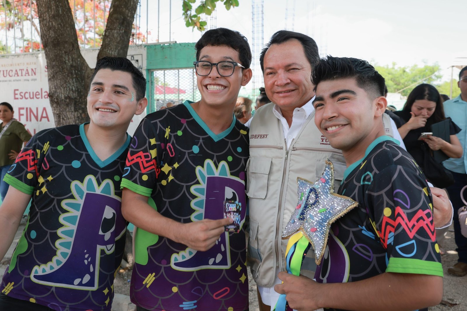Acompañado del director del Instituto para el Desarrollo y Certificación de la Infraestructura Física Educativa y Eléctrica de Yucatán (Idefeey), Gilberto Chan Padilla, el mandatario subrayó que su administración trabaja de la mano del Gobierno Federal, con el respaldo de la presidenta Claudia Sheinbaum Pardo, para llevar justicia social a las comunidades a través de la educación.