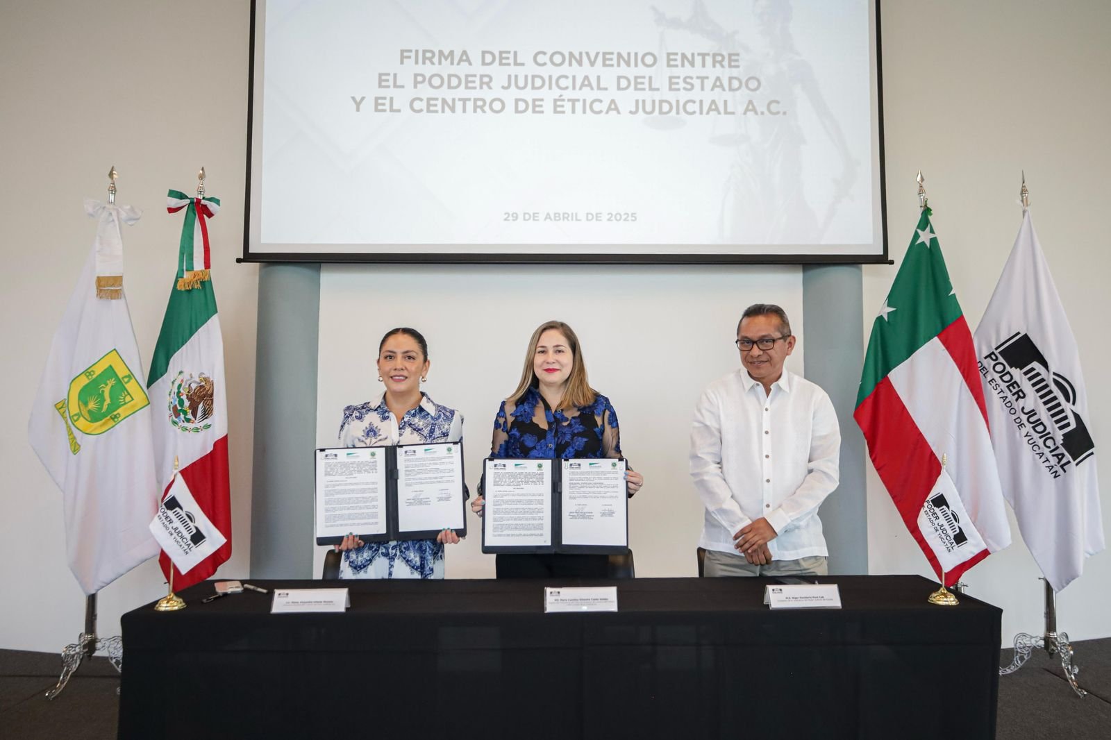 En representación del CEJ, su directora Maley Alejandra Infante Moreno reconoció al Poder Judicial yucateco como un aliado clave en la promoción de una justicia más íntegra, cercana y humana. “La renovación de este convenio reafirma nuestro compromiso conjunto por fortalecer la función jurisdiccional a través de la formación constante y la ética profesional”, afirmó.