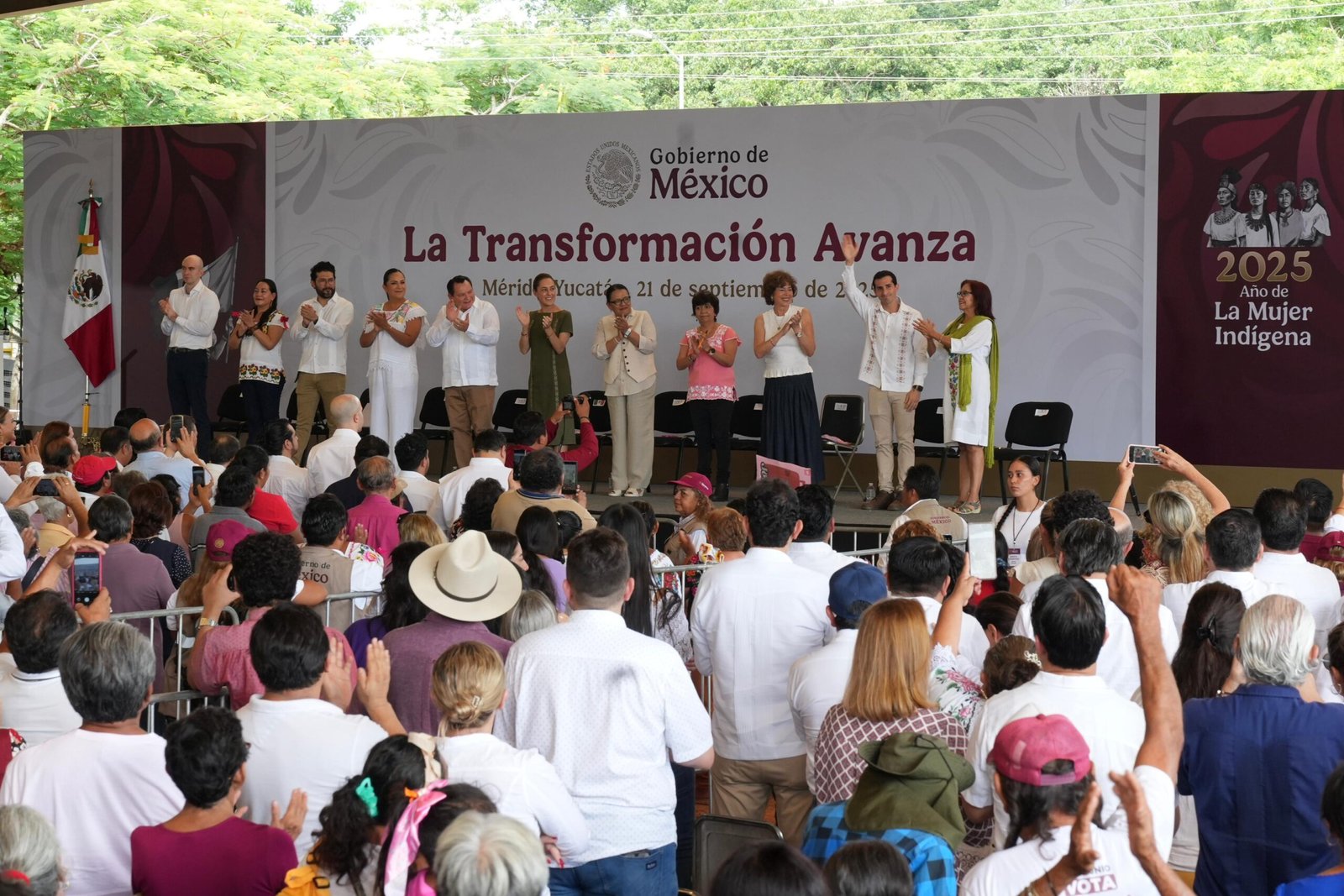 Ante miles de asistentes, Sheinbaum Pardo destacó el trabajo coordinado con el Gobierno de Yucatán, encabezado por Joaquín Díaz Mena, y reafirmó su compromiso con el bienestar y la transformación del estado. En este marco, Rommel Pacheco fue invitado como parte del gabinete presidencial y estuvo acompañado por secretarios de Estado y representantes de diversas dependencias federales.
