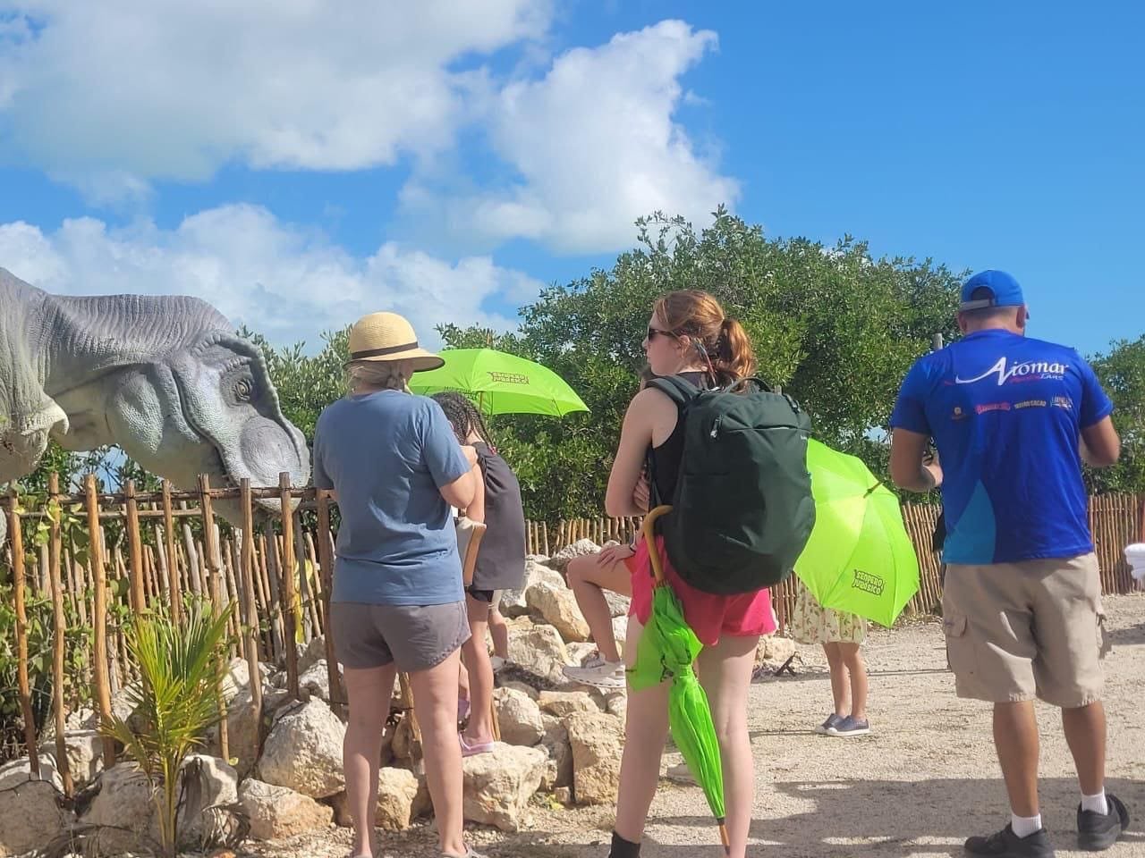Progreso, Yucatán.- El parque temático Sendero Jurásico abrió el 2025 recibiendo a turistas nacionales y extranjeros, incluyendo a los pasajeros del crucero Disney Magic, quienes disfrutaron de una tarde llena de actividades y aprendizaje sobre los antiguos habitantes de la Tierra.