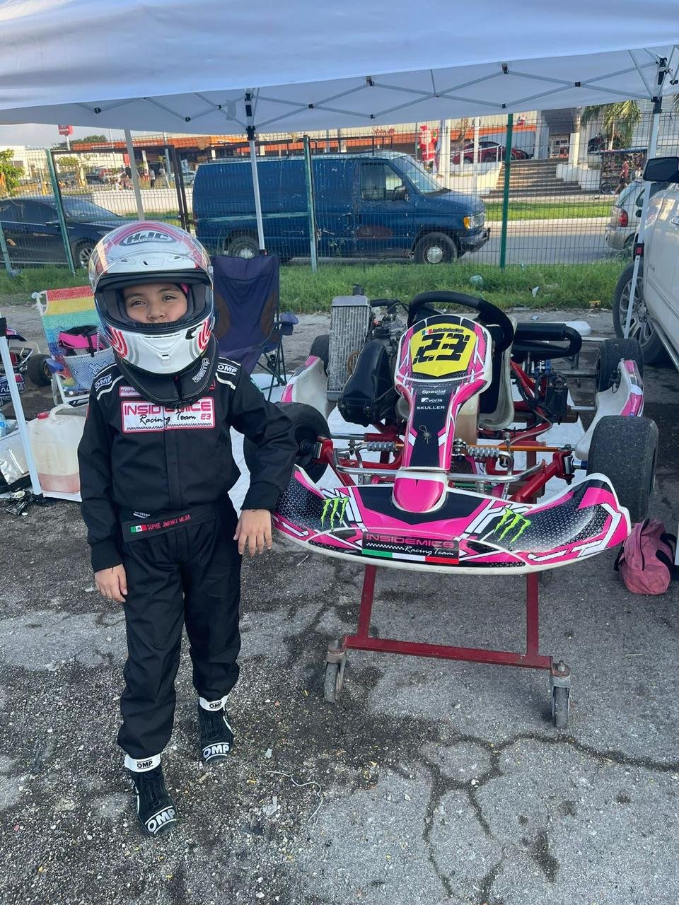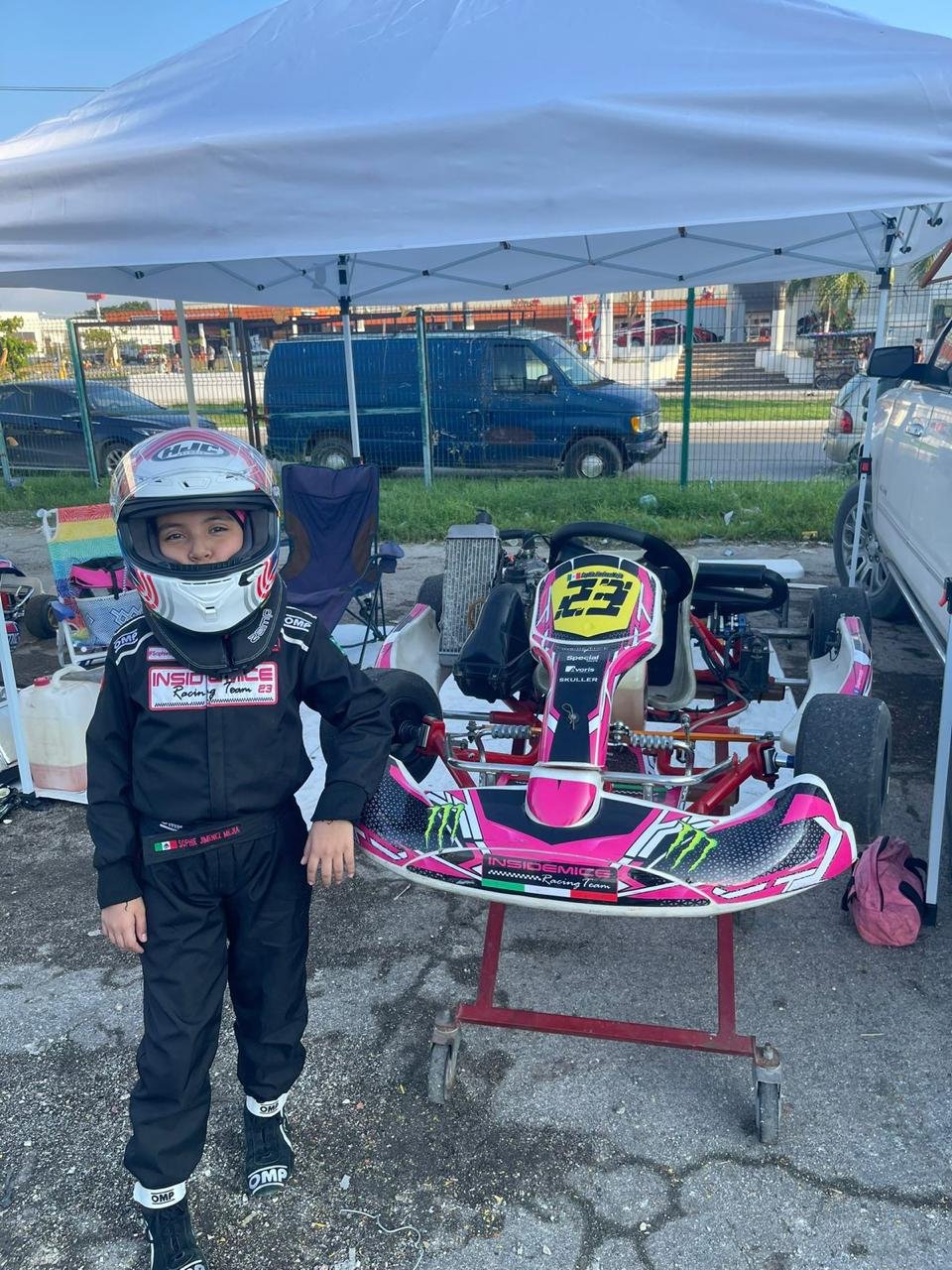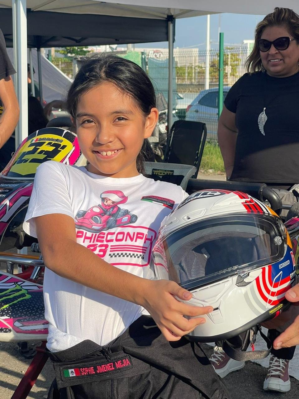 Sophie corre equipada con traje ignífugo, guantes especiales, casco homologado, costillera, balaclava y un hand device que protege su cuello y cervicales. “No se puede escatimar en seguridad”, comenta su madre. A pesar de haber tenido un incidente durante un entrenamiento en el Autódromo de Yucatán, gracias al equipo adecuado no sufrió más que un susto y una leve lesión muscular.