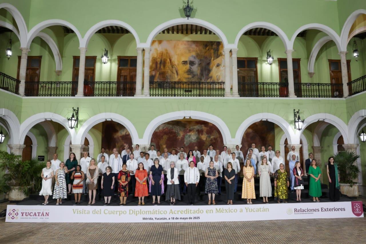 Mérida, Yucatán, mayo de 2025.– Con una firme visión de posicionar a Yucatán como un punto estratégico para la inversión global y la cooperación internacional, el gobernador Joaquín Díaz Mena recibió este viernes a más de 60 representantes del cuerpo diplomático acreditado en México, durante un encuentro celebrado en el Salón de la Historia del Palacio de Gobierno.