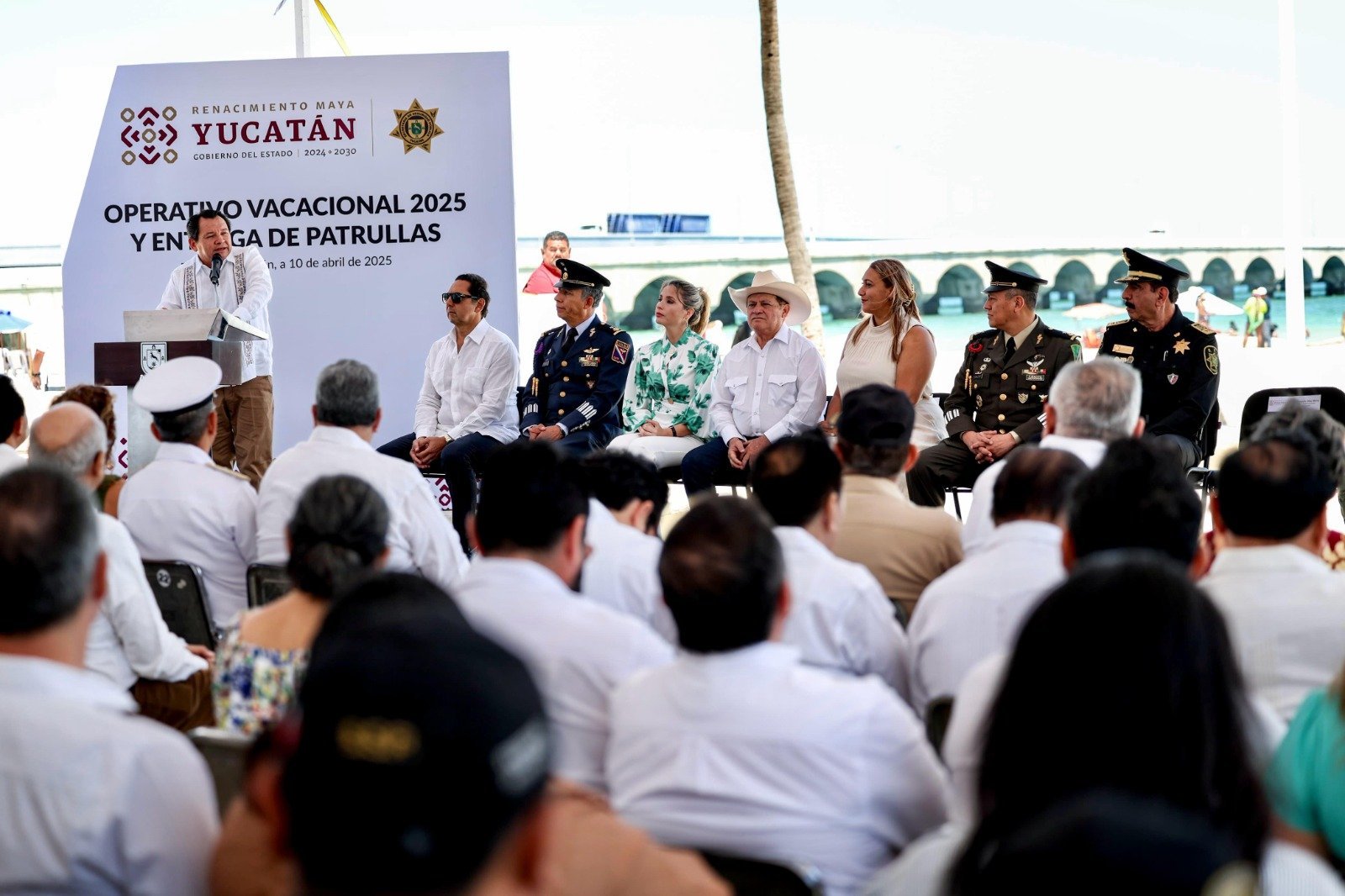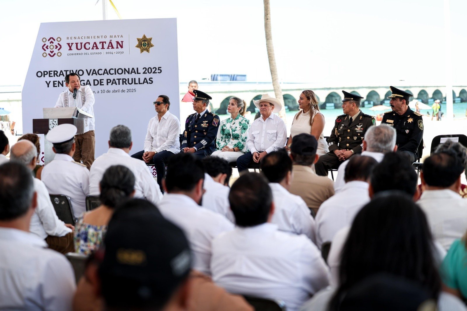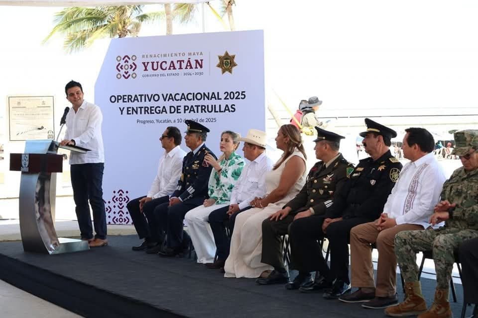 Progreso, Yucatán.- Con el objetivo de garantizar unas vacaciones de Semana Santa seguras para las familias yucatecas y visitantes, el Gobernador Joaquín Díaz Mena encabezó el arranque del Operativo Vacacional 2025, evento en el que también se entregaron 340 nuevas unidades a la Secretaría de Seguridad Pública (SSP) como parte del reforzamiento del parque vehicular.
