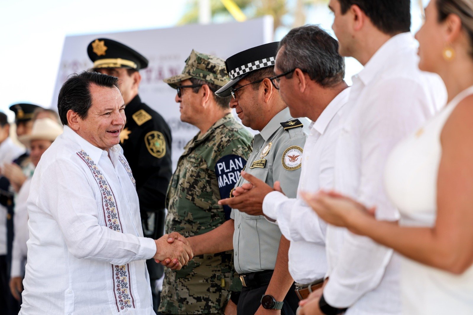 La inversión destinada a este fortalecimiento es histórica, ascendiendo a 654 millones de pesos, y representa una de las mayores acciones en materia de seguridad implementadas en la entidad. Desde el malecón de Progreso, el Gobernador dio el banderazo oficial acompañado por el titular de la SSP, Luis Felipe Saidén Ojeda, y autoridades militares, federales, estatales y municipales.