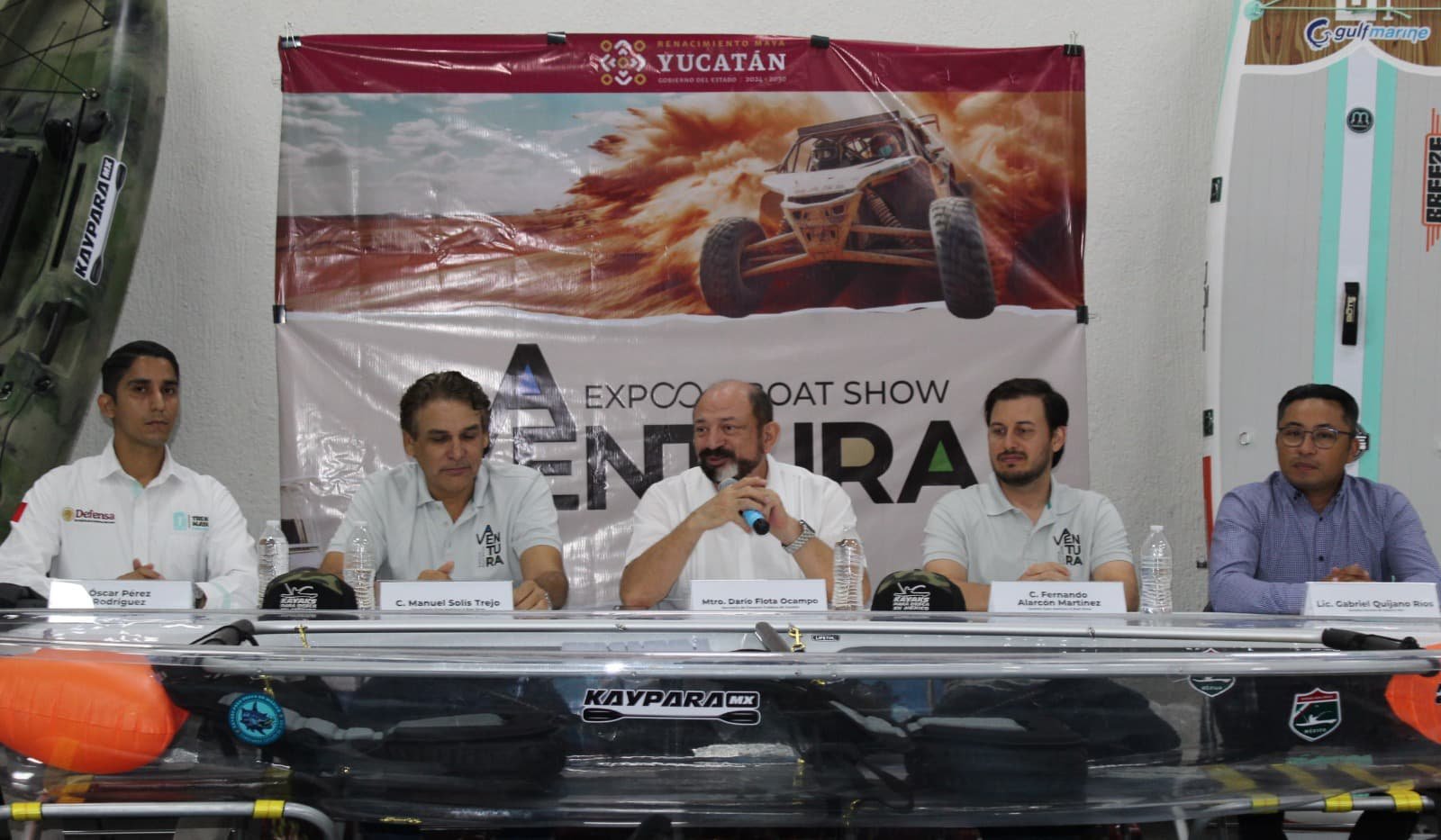En la conferencia de prensa también estuvieron presentes Alejandro Escalante Cisneros, gerente de la Expo Aventura & Boat Show; Pedro Cervera Xool, gerente de las Grutas Chocantes de Tekax; y Gabriel Quijano, gerente general de Destino Mío.